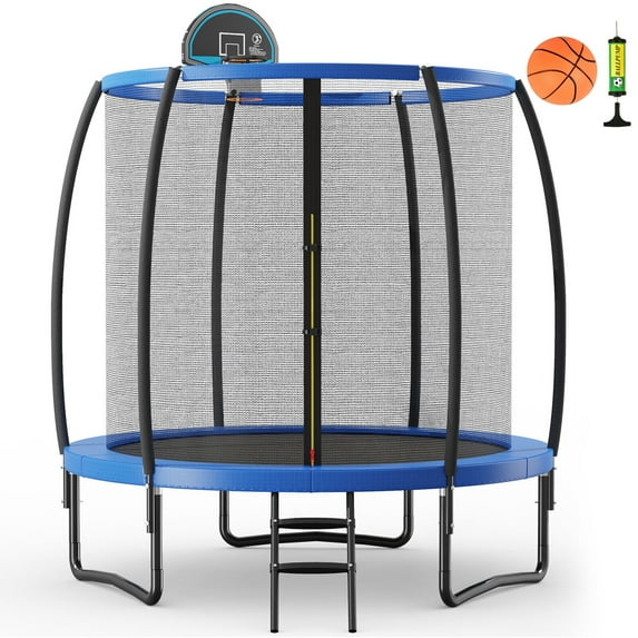 Hero image 0 of Gymax 8FT Recreational Trampoline W/ Basketball Hoop Safety Enclosure Net Ladder, 0 of 10