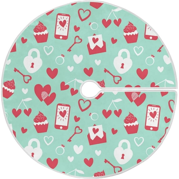 Hero image 0 of FMSHPON Valentine's Day Happy Valentine's Day Cute Love Heart Letter Lock Phone Xmas Christmas Tree Skirt Stand Mat for Holiday Party Decoration Indoor Outdoor 36 inches, 0 of 6