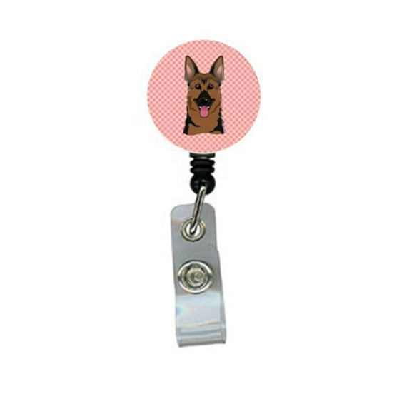 Checkerboard Pink German Shepherd Retractable Badge Reel