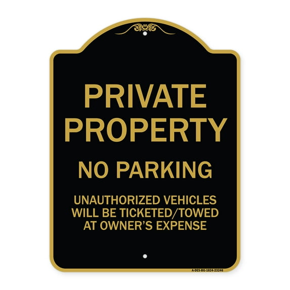 SignMission Designer Sign - Private Property No Parking Unauthorized Vehicles Will Be Ticketed Towed at Owner's Expense (Reflective Aluminum) | Black & Gold 18" X 24" AluminumSignMission 18 x 24 in Designer Series Sign Private Property Parking Unauthorized Vehicles Will Ticketed Towed Owners Expense Black GoldSignMission 18 x 24 in Designer Series Sign Private Property Parking Unauthorized Vehicles Will Ticketed Towed Owners Expense Red WhiteSignMission A DES RW 1818 23246 18 x 18 in Designer Series Sign Private Property Parking Unauthorized Vehicles Will Ticketed Towed Owners Expense 44SignMission 18 x 24 in Designer Series Sign Private Property Parking Unauthorized Vehicles Will Ticketed Towed Owners Expense Green WhiteSignMission Designer Series Sign Private Property Parking Unauthorized Vehicles Will Ticketed Towed Owner s Expense Reflective Aluminum Tan Green 18SignMission Designer Series Sign Private Property Parking Unauthorized Vehicles Will Ticketed Towed Owner s Expense Reflective Aluminum Black SilverSignMission A DES BG 1818 23246 18 x 18 in Designer Series Sign Private Property Parking Unauthorized Vehicles Will Ticketed Towed Owners Expense 44SignMission A DES GW 1818 23246 18 x 18 in Designer Series Sign Private Property Parking Unauthorized Vehicles Will Ticketed Towed Owners Expense 44SignMission Designer Series Sign Private Property Parking Unauthorized Vehicles Will Ticketed Towed Owner s Expense Reflective Aluminum Burgundy 18 xSignMission Designer Series Sign Private Property Parking Unauthorized Vehicles Will Ticketed Towed Owner s Expense Reflective Aluminum Black White 1SignMission Designer Series Sign Private Property Parking Unauthorized Vehicles Will Ticketed Towed Owner s Expense Reflective Aluminum Black White 1SignMission Designer Series Sign Private Property Parking Unauthorized Vehicles Will Ticketed Towed Owner s Expense Reflective Aluminum Green Tan 18SignMission Designer Series Sign Private Property Parking Unauthorized Vehicles Will Ticketed Towed Owner s Expense Reflective Aluminum Tan Green 18