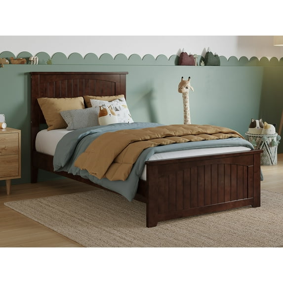 AFI Naples Twin Solid Wood Low Profile Platform Bed with Matching Footboard, Walnut