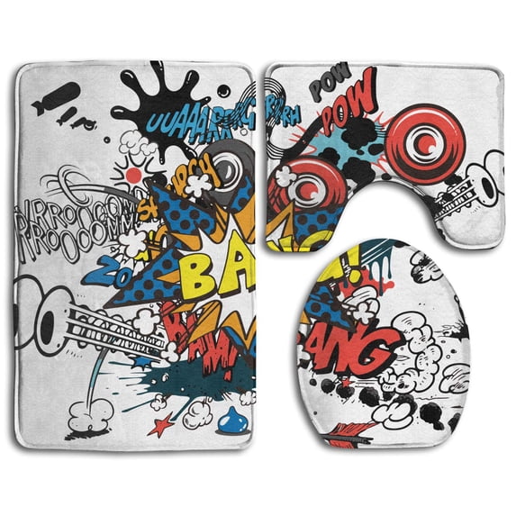 Hero image 0 of PUDMAD Hi-Hop 3 Piece Bathroom Rugs Set Bath Rug Contour Mat and Toilet Lid Cover, 0 of 2