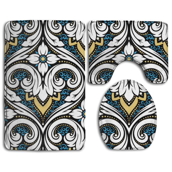 Hero image 0 of PUDMAD Damask Simple 3 Piece Bathroom Rugs Set Bath Rug Contour Mat and Toilet Lid Cover, 0 of 2
