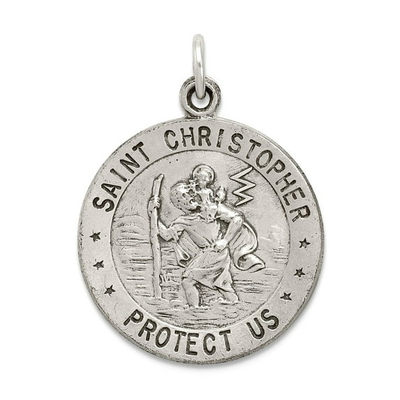 Hero image 0 of 925 Sterling Silver Solid Satin Reversible Oxidized St. Christopher Medal Charm Football 23x20mm Wide Pendant Necklace f, 0 of 2