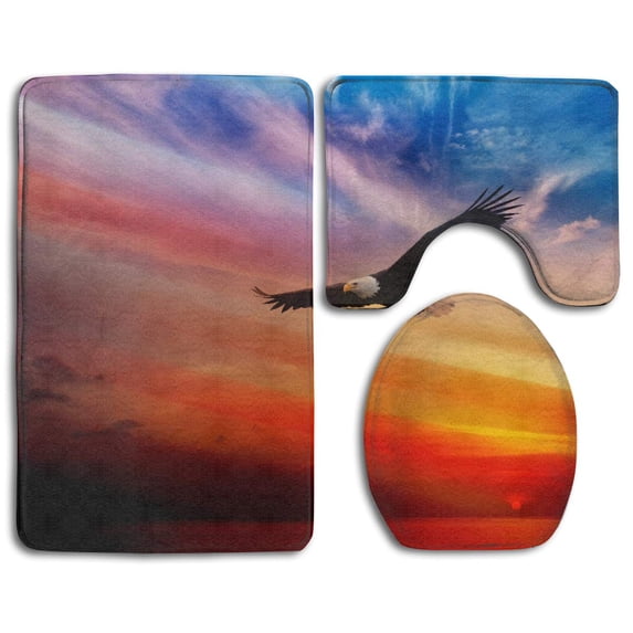 Hero image 0 of PUDMAD Sunset Bald Eagle Birds 3 Piece Bathroom Rugs Set Bath Rug Contour Mat and Toilet Lid Cover, 0 of 2