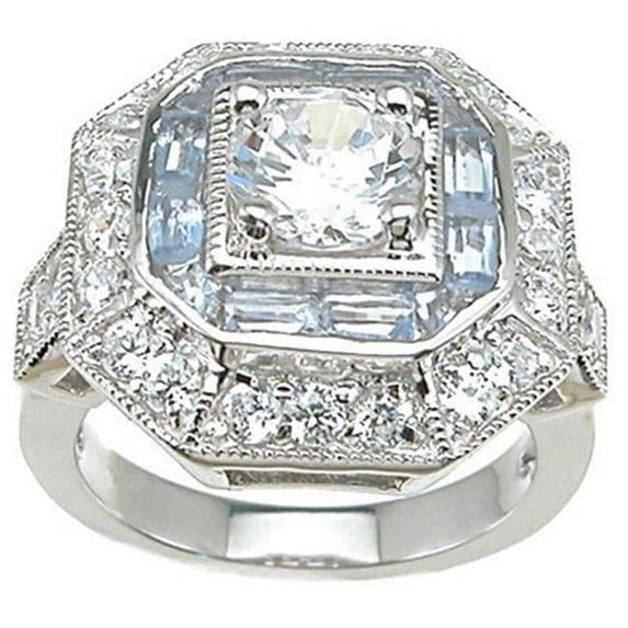 Sterling Couture r6317 925 Sterling Silver Cubic Zirconium Antique Style Pave Anniversary Ring Rhodium Finish - Size 5