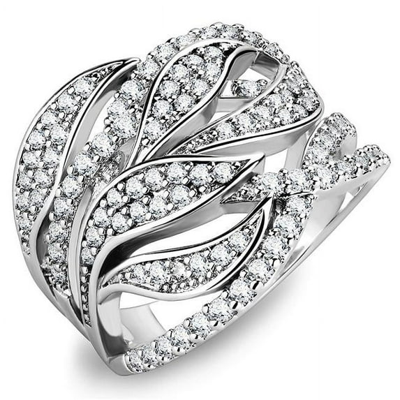 Women Rhodium Brass Ring with AAA Grade CZ in Clear - Size 6