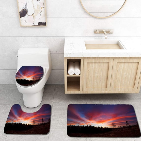 Hero image 0 of PUDMAD Beautiful Vibrant Sunset Clouds Landscape 3 Piece Bathroom Rugs Set Bath Rug Contour Mat and Toilet Lid Cover, 0 of 2