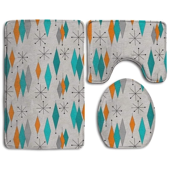 Hero image 0 of PUDMAD MidCentury Modern Diamond Fornisex 3 Piece Bathroom Rugs Set Bath Rug Contour Mat and Toilet Lid Cover, 0 of 2