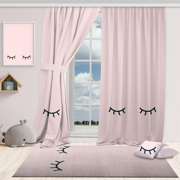 Hero image 0 of 3S Brother's Sleepy Pink 100% Blackout Curtains for Kids Bedroom Thermal Insulated Noise Reducing Home Décor Printed Window Curtains Single Curtain Panel - Made in Turkey (52"Wx108"L), 0 of 6