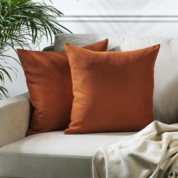 3S Brother's Solid Color Cushion Cover Velvet Look Home Décor Throw Pillow Case with Invisible Zipper Set of 2 Pieces for Chair Couch Bedroom & Livingroom Décor Pillowcase - B-Orange 16"x16" Each
