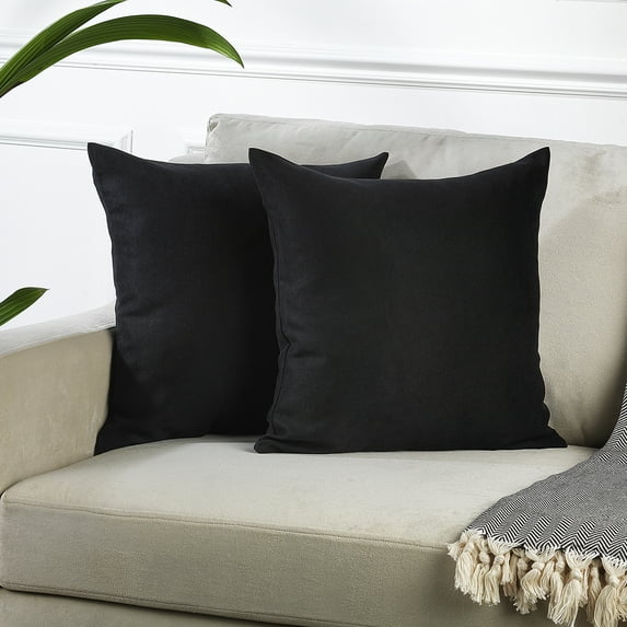 Hero image 0 of 3S Brother's Solid Color Cushion Cover Velvet Look Home Décor Throw Pillow Case with Invisible Zipper Set of 2 Pieces for Chair Couch Bedroom & Livingroom Décor Pillowcase - Black 20"x20" Each, 0 of 9