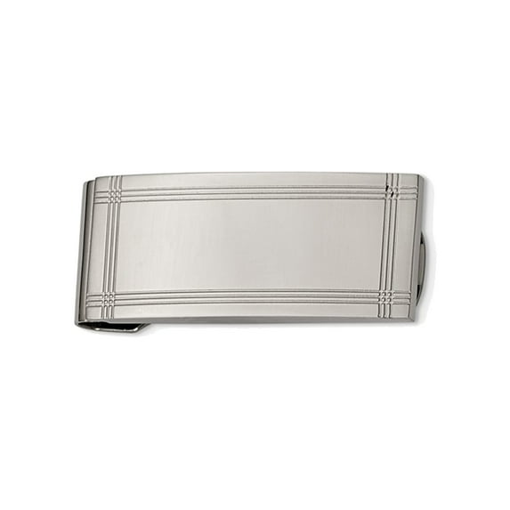 Gem & Harmony Mens Chisel Money Clip in Polished and Grooved Stainless Steel for Men
