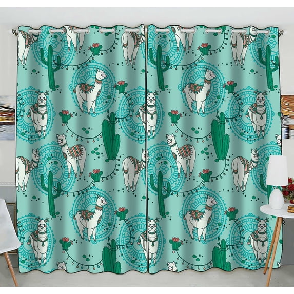 Hero image 0 of PKQWTM Cute Doodle Alapaca In Boho Style And Cactus Practical heat insulation Shading Window Curtain Size 52(W) x 84(H) inches (Two Piece), 0 of 1