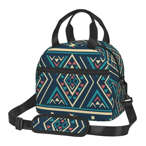 Hero image 0 of DouZhe Lunch Bags for Women and Men, Retro Blue Tribal Style Geometric Prints Reusable Portable Insulated Cooler Waterproof Lunch Tote Bag for Travel Work School Picnic, 0 of 7