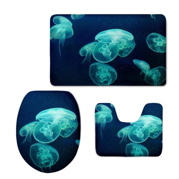 Hero image 0 of PUDMAD Jellyfish 3 Piece Bathroom Rugs Set Bath Rug Contour Mat and Toilet Lid Cover, 0 of 2