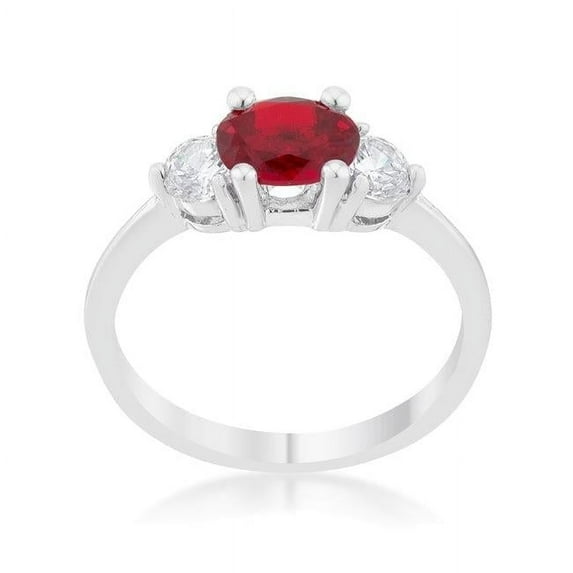 Precious Stars R07597R-C10-07 Precious Stars Silvertone Oval-Cut Red Cubic Zirconia Triplet Ring