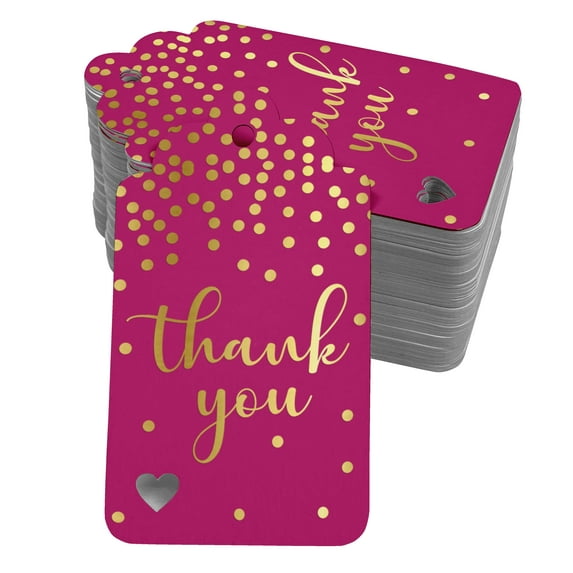 Inkdotpot Gold Foil Paper Hang Tags ThankYou Bridal Shower-Baby Shower-Retirement-Wedding-Birthday Favor Tags 50 Pack