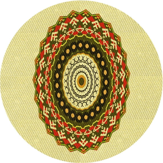 Ahgly Company Machine Washable Indoor Round Transitional Dark Bisque Brown Area Rugs, 4' Round