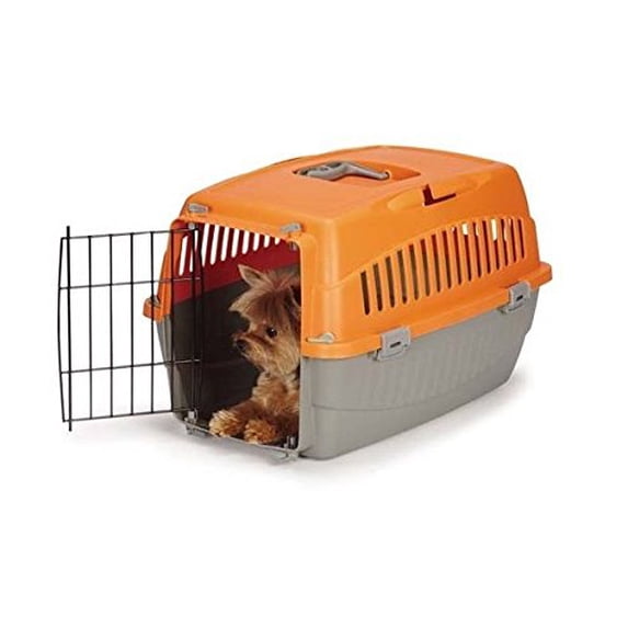 Small Dog Cat Pet Travel Crate Lightweight Pet Carrier Plastic & Wire Kennel Cab(Medium Mandarin)