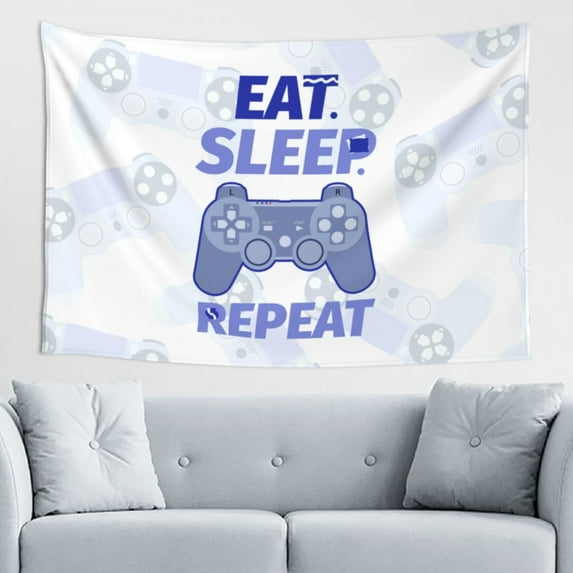Hero image 0 of DouZhe Blue Cartoon Eat Sleep Game Controller Tapestry Modern Wall Hanging Tapestries Dorm Room Home Decor, 60" x 40", 0 of 7
