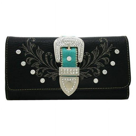 Hero image 0 of WB146X-BK-TQ Western Rhinestone Bling Belt Buckle Trifold Wallet - Black & Turquoise Trim, 0 of 1