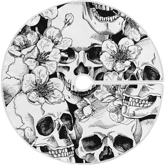 Hero image 0 of FMSHPON White Skull Xmas Christmas Tree Skirt Stand Mat for Holiday Party Decoration Indoor Outdoor 48 inches, 0 of 6