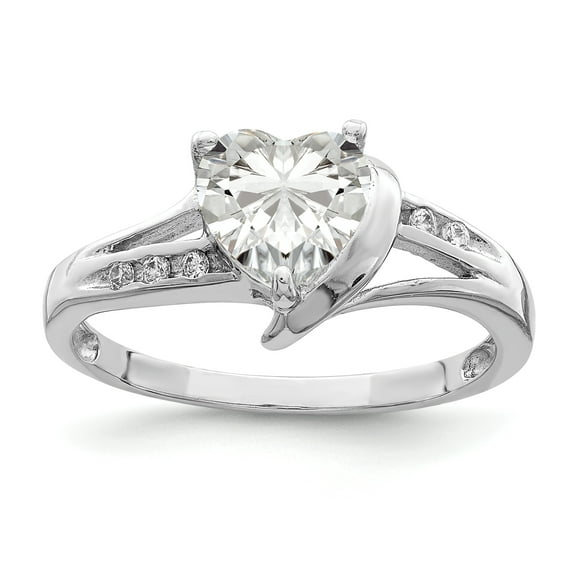 925 Sterling Silver Polished Rhodium Plated Cubic Zirconia Triangle Ring Size 6 2mm Wide Ring for Women