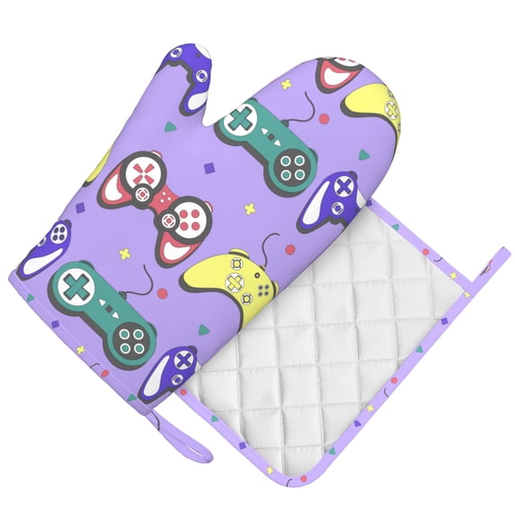 Hero image 0 of DouZhe Oven Mitts and Pot Holders Sets, Retro Style Game Controller Prints Non-Slip Heat Resistant Kitchen Oven Silicone Glove, 0 of 7