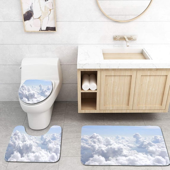 Hero image 0 of PUDMAD Clouds from Above 3 Piece Bathroom Rugs Set Bath Rug Contour Mat and Toilet Lid Cover, 0 of 2