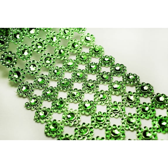 Hero image 0 of 4" 1 Yard Apple Green Diamond Flower Mesh Wrap Roll Crystal Rhinestone Sparkle Ribbon, 0 of 1
