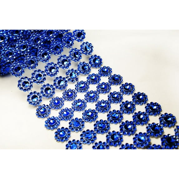 Hero image 0 of 4" 1 Yard Royal Blue Diamond Flower Mesh Wrap Roll Crystal Rhinestone Sparkle Ribbon, 0 of 1