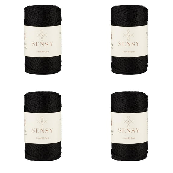 4 Skeins of Sensy Premium 3mm 131 Yards Polyester Rope 100% Polypropylene Cord Macrame Cord 3mm Crochet Bag Cord Macrame Rope Crochet Thread Gift for Knitter (Black)