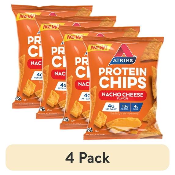 - 4-pack of Atkins Protein Chips, 1.1oz, Nacho Cheese