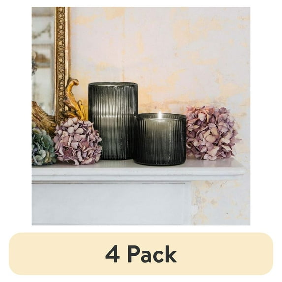 - 4-pack of Better Homes & Gardens Smoke Glass Ribbed Hurricane Candleholder, 8", Large