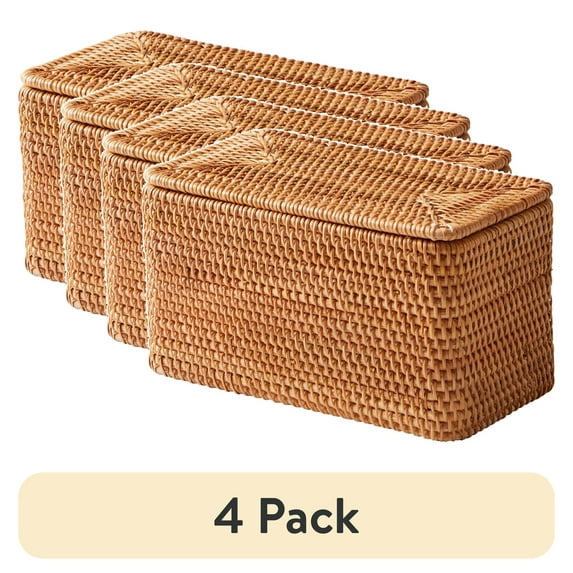 - 4-pack of Better Homes & Gardens Brown Rattan Organizer Basket with Lid