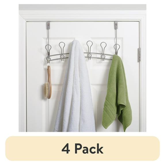 (4 pack) Mainstays SnugFit Over-the-Door Towel & Robe Rack – 6 Double Hooks, Satin Nickel