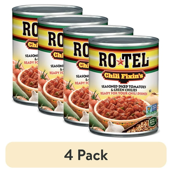 - 4-pack of ROTEL Chili Fixin's Diced Tomatoes & Green Chilies, 10 oz