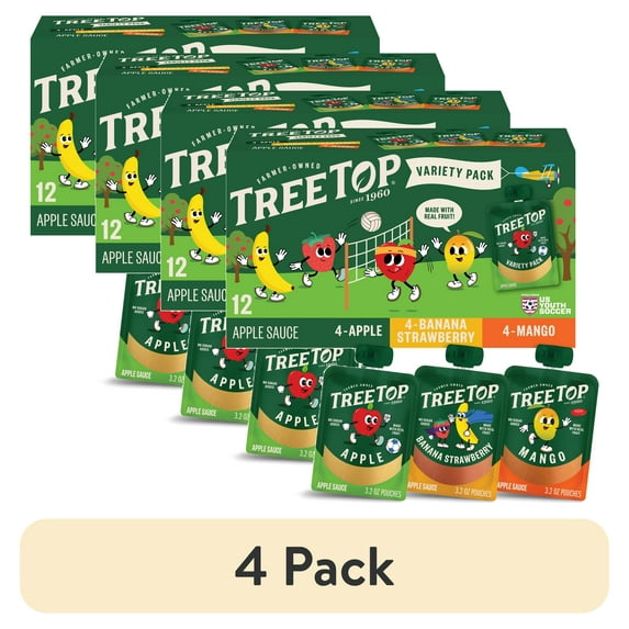 - 4-pack of Tree Top Variety Pack Apple Sauce, 3.2 Ounce Pouch, 12 Count