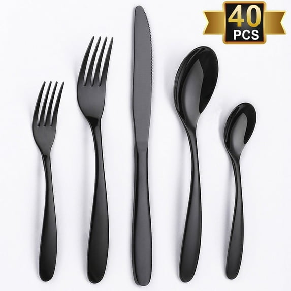 Hero image 0 of 40-Piece Silverware Set, Stainless Steel Flatware Cutlery Set For Home Kitchen Restaurant Hotel, Kitchen Utensils Set, Black, 0 of 6
