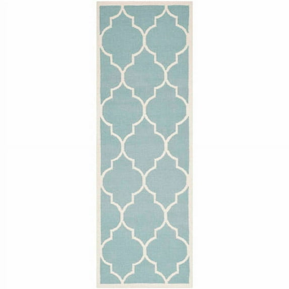 Hero image 0 of SAFAVIEH Dhurrie Toby Geometric Moroccan Wool Runner Rug, Light Blue/Ivory, 2'6" x 10', 0 of 9