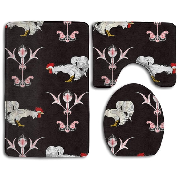 Hero image 0 of PUDMAD Cock Chicken Funny 3 Piece Bathroom Rugs Set Bath Rug Contour Mat and Toilet Lid Cover, 0 of 2