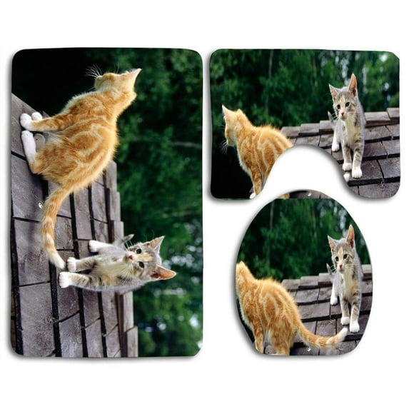 Hero image 0 of PUDMAD Fluffy Kittens 3 Piece Bathroom Rugs Set Bath Rug Contour Mat and Toilet Lid Cover, 0 of 2