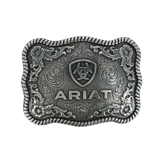 Logo Belt Buckle by Ariat. A western belt buckle with classic scroll work in brushed silver tone. The floral and scroll work frames the Ariat name and logo so you can show your loyalty to the brand. Etched roped edges complete the look. Fits belts up to 1.5 inches in width. Available in , Walmart marketplace seller Belt Outlet specializes in sale-priced Belt Buckles and clothing accessories for men, women and children. We carry quality belts, wallets, headwear, cold weather accessories including Belt Buckles for Men. Many items have reduced or rollback prices and most orders ship within one business day.