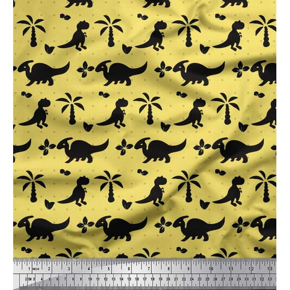 Hero image 0 of Soimoi Modal Satin Fabric Dot,Tree & Dinosaur Jungle Printed Fabric 1 Yard 42 Inch Wide, 0 of 1