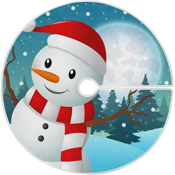 Hero image 0 of FMSHPON Christmas SnowmanCute Red Scarf Xmas Christmas Tree Skirt Stand Mat for Holiday Party Decoration Indoor Outdoor 36 inches, 0 of 6
