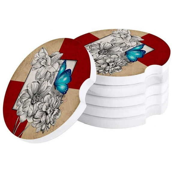 Hero image 0 of FMSHPON Retro Wall Splicing Butterfly and Flowers Set of 2 Car Coaster for Drinks, Absorbent Ceramic Stone Coasters Cup Mat with Cork Base for Home Kitchen Room Coffee Table Bar Decor, 0 of 5