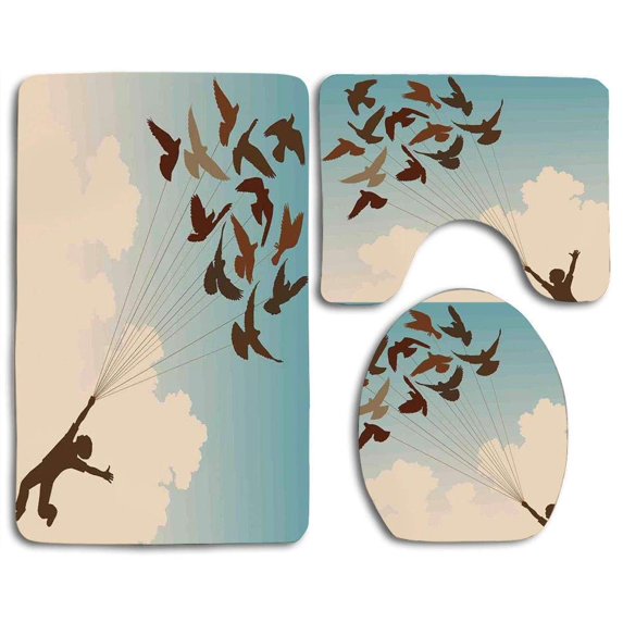 Hero image 0 of PUDMAD Flying Birds Silhouette a Boy 3 Piece Bathroom Rugs Set Bath Rug Contour Mat and Toilet Lid Cover, 0 of 2