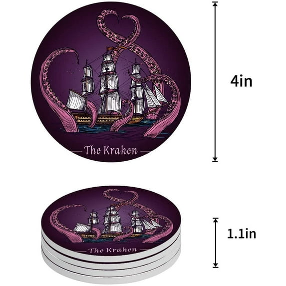 Hero image 0 of FMSHPON Octopus Set of 4 Round Coaster for Drinks, Absorbent Ceramic Stone Coasters Cup Mat with Cork Base for Home Kitchen Room Coffee Table Bar Decor, 0 of 6