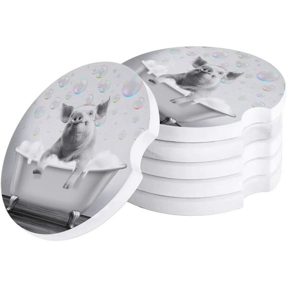 Hero image 0 of FMSHPON Pig and Bubbles in The Bathtub Set of 2 Car Coaster for Drinks, Absorbent Ceramic Stone Coasters Cup Mat with Cork Base for Home Kitchen Room Coffee Table Bar Decor, 0 of 5